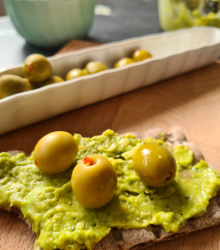 Sastojci:1 zreli avokadosok od pola limuna ili limeteso, na vrh kašičice1/2 kašičice belog luka u prahu1/2 kašičice suvog peršuna1 kašika maslinovog ulja Priprema:Sve sastojke stavite u secka i blendirajte dok ne dobijete kremastu strukturu Po želji možete servirati sa maslinama, ili sa golicom ili paradajzom. Namaz je spreman.