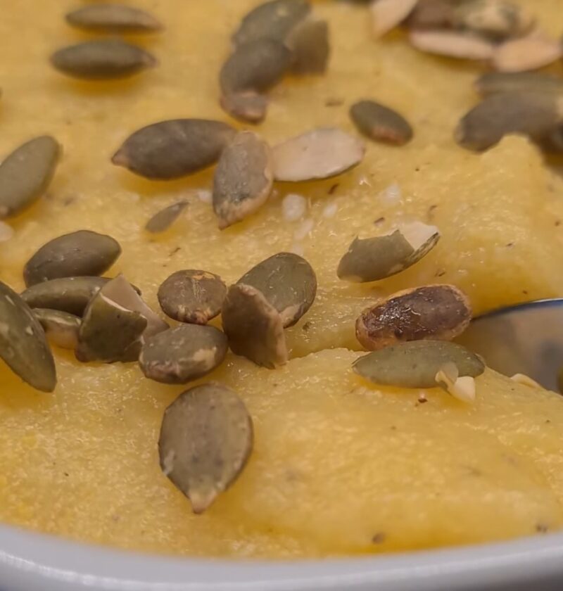 Sastojci: • 100g palente • 1 puna kašika pirinčanog brašna • 1 ravna kašika heljdinog brašna • 1 kašičica soli • bundevino seme Priprema miksa:  Na 100g palente, dodati 1 punu kašiku pirinčanog brašna i ravnu kašiku heljdinog brašna. Promešati kašikom. Priprema kaše: 1. Staviti 400 ml vode i kašičicu soli da proključa 2. Smanjiti …
